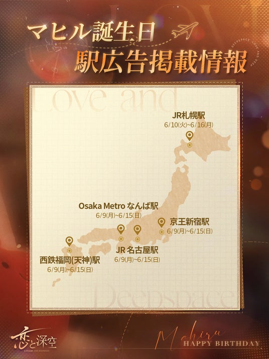 ゲーム内イベントに加え、マヒルのお誕生日をお祝いして、東京・大阪・福岡・名古屋・北海道にてポスター広告を掲出致します。