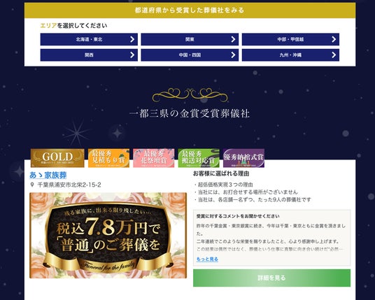 - 都道府県別・部門賞別で検索お住まいの地域や気になる部門から、受賞葬儀社を簡単に探すことができます。