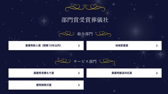 部門賞は、消費者が自分に合った葬儀を実現できるよう、各葬儀社の強みや特徴を評価し、優れた取り組みを選出するものです。