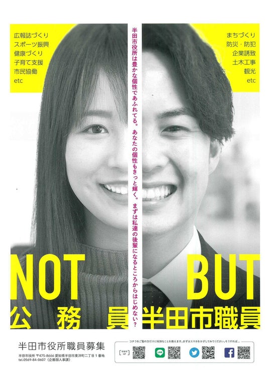 半田市では、次代の半田市を担う人材、情熱をもって住民福祉の向上にご尽力いただける人材を募集しています。事務職(経験者)、土木・建築技術職(経験者)、保健師、幼児教育士を追加で募集します。