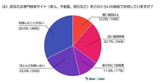 【SEO対策】で検索順位No.1を獲得した(注1)ランクエスト(https://rank-quest.jp/column/column/how-to-seo/ )は、2025年1月27日に30代150名を対象に「専門検索サイトの利用実態と評価基準」に関する独自調査を実施し、以下の3点について多角的に分析しました。