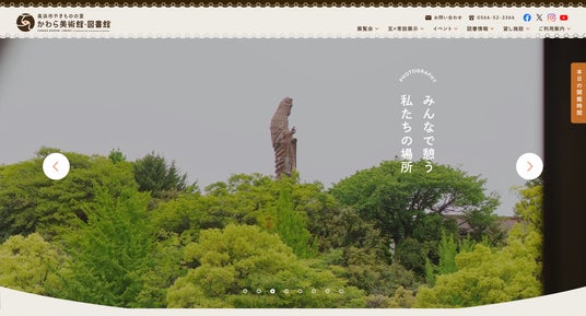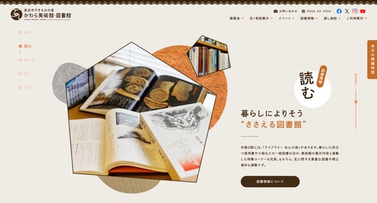 「高浜市やきものの里かわら美術館・図書館」のポータルサイトは、施設の魅力をより多くの方に伝え、来館者やファンを増やすことを目的に制作されました。本サイトでは、ユニークな美術館・図書館の特性を活かし、訪れる方々にとって身近な存在であることを『再発見』していただけるようデザインされています。