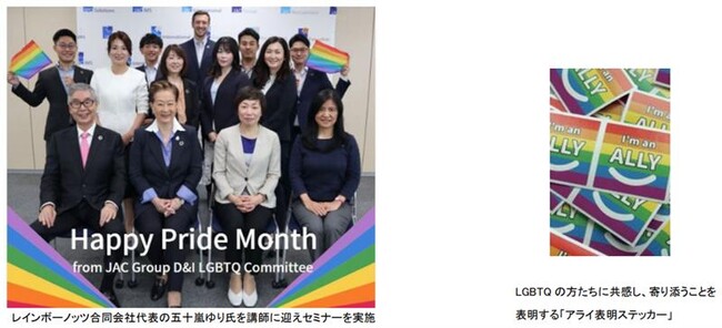 2021年より社内でLGBTQ Committeeを発足し、当社グループにおいてLGBTQの認知度を向上させ、理解を深めることを目的として、外部講師を招いてのセミナーの開催や、「アライ」(※4)としての意思表明をするステッカーを配布するなど、さまざまな活動を行っています。
