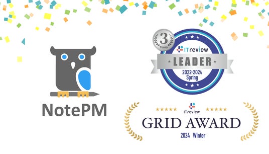 株式会社プロジェクト・モードが提供する、ナレッジ管理SaaS「NotePM ( https://notepm.jp )」は、アイティクラウド株式会社運営のIT製品レビューサイト「ITreview」において、満足度・認知度ともに優れた製品であると評価され、「ITreviewGrid Award 2024 Spring」のマニュアル作成、コラボレーションツール、グループウェア、Web社内報部門において「Leader」を受賞いたしました。