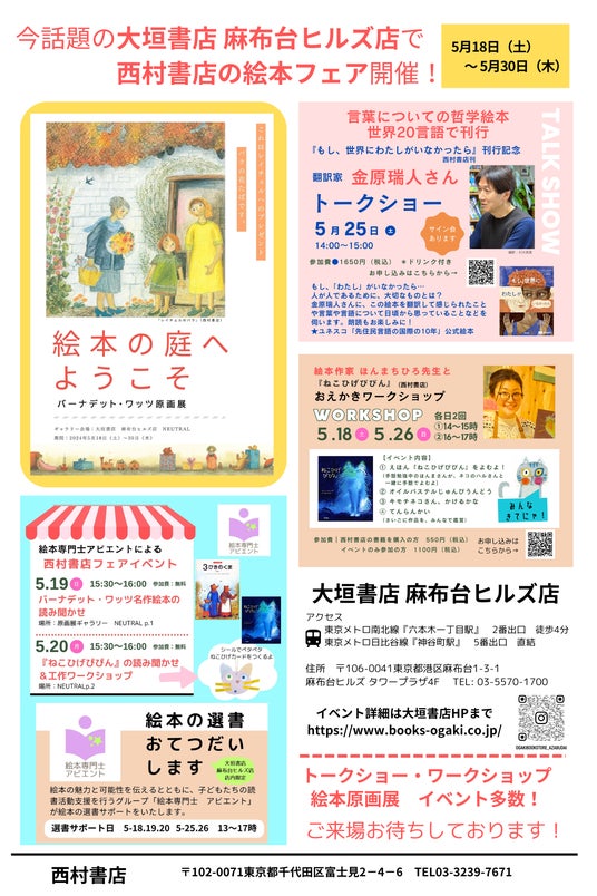 *大垣書店麻布台ヒルズ店にて5月18日から30日まで、小社が所蔵する人気絵本作家の原画展など、〈西村書店フェア NISHIMURA EHON MUSEUM-もし、世界にわたしがいなかったら〉を開催します*