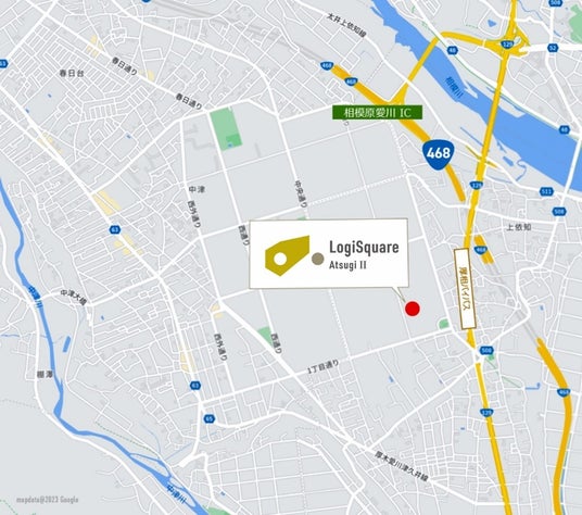 「ロジスクエア厚木II」は、神奈川県厚木市の内陸工業団地内に位置しております。首都圏中央連絡自動車道(圏央道)「相模原愛川」インターチェンジより約3.2km、国道129号線(厚相バイパス)至近に位置し、厚木市内、相模原市内への配送はもとより圏央道経由での東名高速自動車道、中央高速自動車道の利用により、広域物流拠点立地としても優位性を備えています。