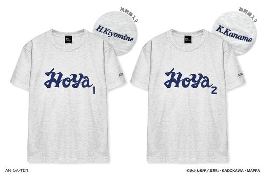 全2種。「宝谷シニア」のクラブチームTシャツをイメージした一枚。「清峰葉流火」「要 圭」のそれぞれの背番号のプリントと名前を刺繍したオリジナル仕様。