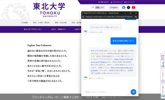 株式会社MAKOTO Prime(宮城県仙台市、代表取締役:竹井智宏)は、会話型AI構築プラットフォームを提供する株式会社miibo(東京都渋谷区、代表取締役 CEO:功刀 雅士)との連携により、国立大学法人東北大学(宮城県仙台市)の教育・研究分野での生成AIチャットボット導入を行うことを発表します。この取り組みは、東北大学が進めるデジタルトランスフォーメーション(DX)の一環として、業務効率化および教育・研究活動の高度化を目指すものです。国立大学での生成AI応対チャットボットの導入は全国初の事例となります。