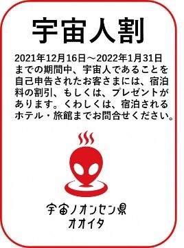 ■「宇宙人割」も!大分県内の温浴・宿泊施設でのキャンペーン