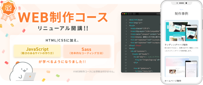 WEB制作コースのリニューアル開講を記念して受講料が初月30%OFFになるキャンペーンを実施中です!