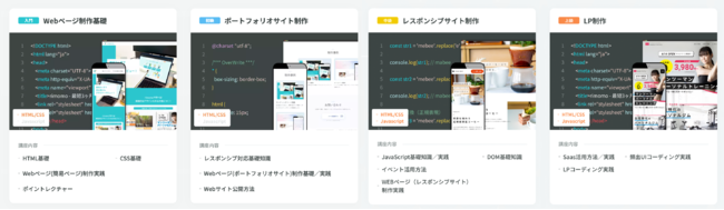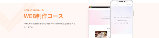 HTML/CSSの基礎知識を学びWEBページ制作の実践方法を学べるコースです。