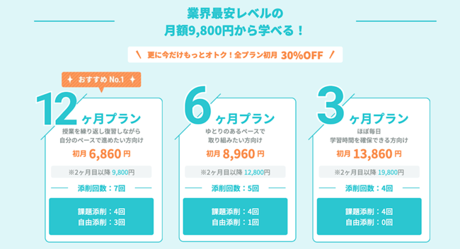 12ヶ月プラン:初月 6,860円 (通常:月額 9,800円) ★おすすめNo.1!