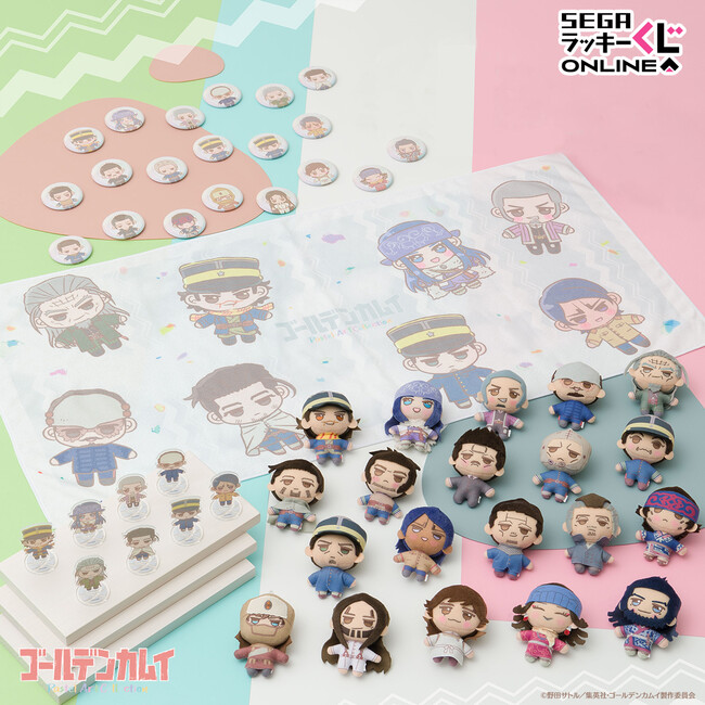 本製品では、2022年12月16日(金)より店頭にて販売中のセガ ラッキーくじ「TVアニメ『ゴールデンカムイ』 Pastel Art Collection」と同じ賞品(A~D賞)が当たるくじをオンラインでもお楽しみいただけます。パステルカラーを基調としたデフォルメイラストをデザインしたバスタオルやぬいぐるみマスコットなどがもれなく当たります。