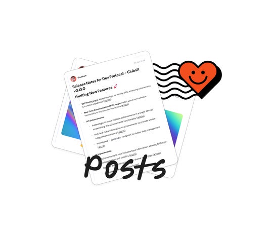 Developers Clubでは、ClubsのプロダクトチームメンバーがClubsに関する、非公開の開発情報を含むあらゆる最新のアップデートをリリースノートとして一早く投稿します。リリースノートはクラブ内のPosts機能を使って共有されるので、ウォレット接続後に投稿への返信あるいは絵文字によるリアクションができます。アップデート情報はメンバーシップを購入していない方も閲覧が可能なので、お気軽にアクセスください。