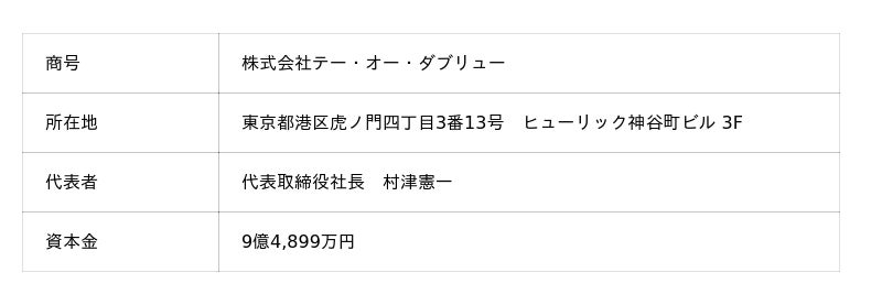 ■株式会社テー・オー・ダブリューの概要