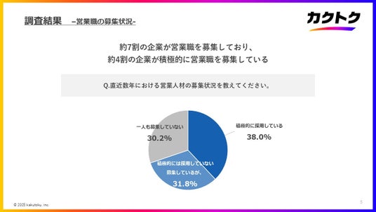 日本最大級の営業マッチングプラットフォーム「カクトク」を運営するカクトク株式会社(本社:大分県別府市、代表取締役:満田 聖也、以下「カクトク」)は、営業に関わる経営者・会社員500名を対象に「営業職の採用に関する調査」を実施しました。