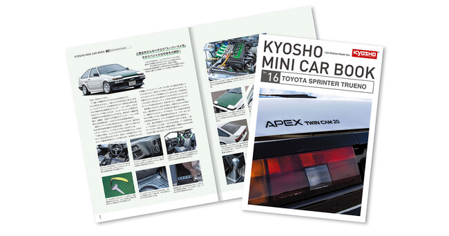 小冊子のテーマは「ハチロクのリアル」です。未だ新たなカスタマイズ、アフターパーツが生まれ、トヨタでは部品の復刻、電気自動車や水素自動車へのコンバートモデルが公開されるなど、誕生から40年が経過した現在も話題が絶えません。「なぜハチロクはここまで愛されるのか!?」 それを知るべく元ハチロクオーナーの京商スタッフが、専門店を訪問。最新のカスタマイズやチューナーの想いに触れ、魅力に迫ります。さらにトヨタが展開するGRヘリテージパーツの取り組みについてもインタビュー。オーナーが注目する取り組みの核心に迫りました。また、日本で一番有名なハチロク、元レーシングドライバーの土屋圭市氏の愛車「スーパー豆号」を徹底解剖。一見ノーマル+αに見えるトレノですが、ボディの下に隠された秘密を明らかにしています。また、ハチロクを知らない方に向けて「AE86 60のQ&A」を用意。初心者からマニアまで満足いただける内容となっています。
