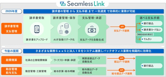 両社は、本パートナーシップの具体的取組みとして、経理業務を包括的に効率化する DX 支援ソリューション「京都 FG SeamlessLink (シームレスリンク)」と連携した「京都FG 請求・支払い BOX」の提供を予定しております。