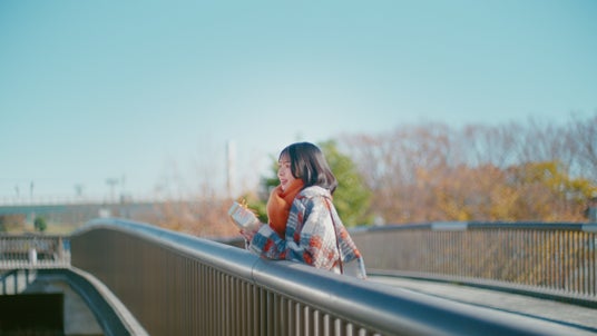 最後は、メンバー全員がミルクチョコレートを手に「チョコレートは明治」と声を揃えたあと、再び橋の上に立つ鎮西さんの表情が映し出されます。手作りチョコレートを渡す相手が来たことを感じさせる、嬉しそうな笑顔を浮かべます。