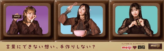 2026年9月に100周年を迎える明治ミルクチョコレートは、厳選された6種類の原材料のみで作り上げ、植物性油脂を使わず、チョコレートに定められた厳しい品質基準を満たした特別なチョコレート。ハレの日をお菓子で盛り上げ・アップデートする「NEW OKASHI PROJECT」では「明治おかし大使」であるFRUITS ZIPPERと共に、「ピュアなチョコレートで、ピュアな想いを贈ろう!」をコンセプトに、言葉だけでは伝えきれない想いをチョコに込めて届ける、新しいバレンタインへとアップデートします。