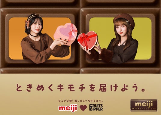 チョコレートやお菓子を通じてバレンタインをもっと楽しんでもらえるように、株式会社 明治(本社:東京都中央区、代表取締役社長:八尾 文二郎)は、7人組アイドルグループ・FRUITS ZIPPERを起用した新TVCM「meiji(ハート)FRUITS ZIPPER ~ピュアな想いはピュアなチョコで~」篇を2026年1月30日(金)より公開します。