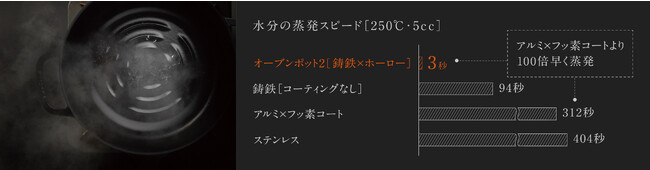 ・さらにオーブンポット2は食材の余分な水分を瞬間的に蒸発させ、旨味を凝縮する「瞬間蒸発」ホーローを新採用。