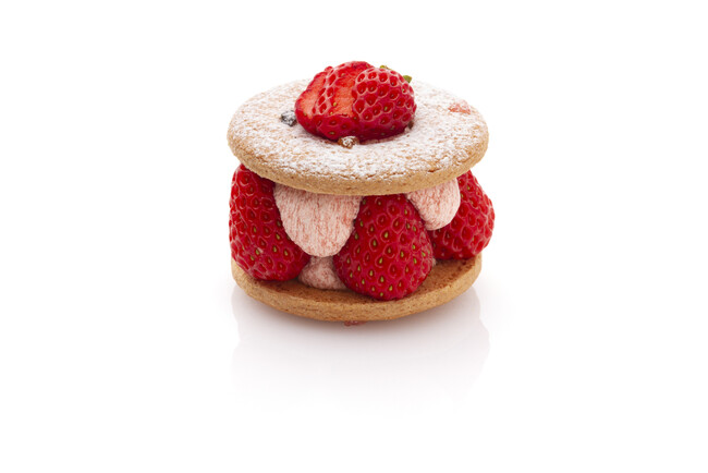 泉屋東京店の代表 泉氏をイメージしたキュートなケーキ。泉屋のシンボルマークの浮輪をかたどったクッキー“リング ターツ”で甘酸っぱいイチゴのバタークリームとフレッシュのイチゴをサンドしました。リング ターツの優しい味わいとイチゴの甘酸っぱさのコントラストが印象的。
