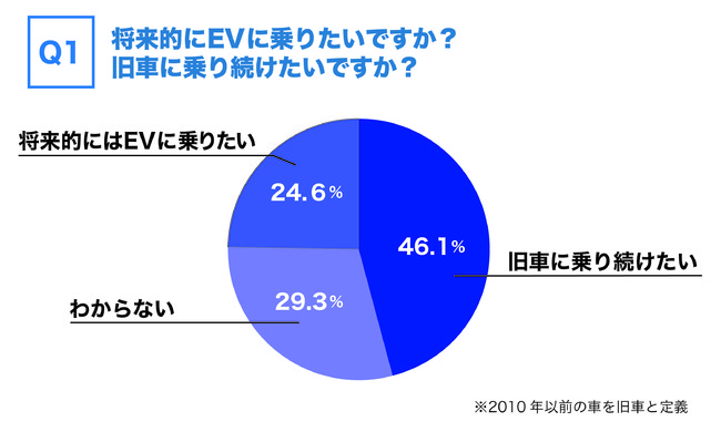 Q1.将来的にEVに乗りたいですか?旧車に乗り続けたいですか?※2010年式以前の車を旧車と定義