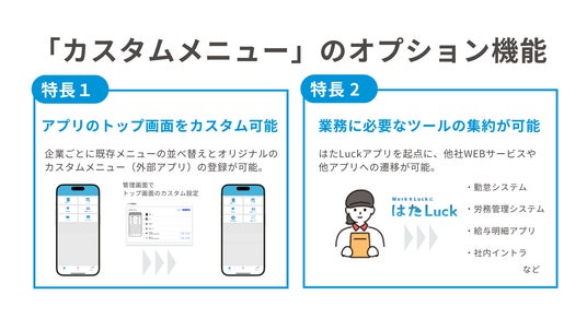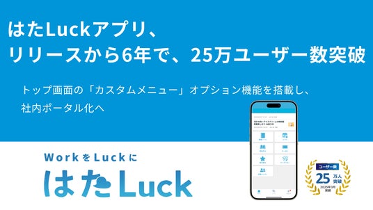 株式会社HataLuck and Person(本社:東京都中央区、代表:染谷 剛史、以下「HATALUCK」)は、サービス業の職場マネジメントツール「はたLuckアプリ」の利用ユーザー数がリリースから約6年で累計25万人を突破したことをお知らせします。また、企業の発信強化と外部ツールとの連携を可能にするトップ画面の「カスタムメニュー」オプション機能を新たに搭載し、従業員とのコミュニケーション接点の強化を通じて、エンゲージメント向上を支援します。