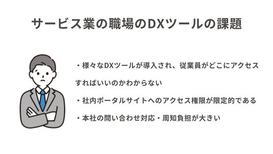 一方で、サービス業の職場では、給与明細や勤怠管理、社内イントラといった複数のツールが併用され、情報が分散することで、コミュニケーションが複雑化し、「どこにアクセスしたらいいかがわからない」「周知や問い合わせ対応に時間がかかる」といった課題も生じています。こうした現場の声を受けて、「情報共有の円滑化」や「ツールの一元管理」へのニーズに応えるべく、トップ画面のカスタマイズと外部ツールとの連携を可能にする「カスタムメニュー」オプション機能を開発しました。