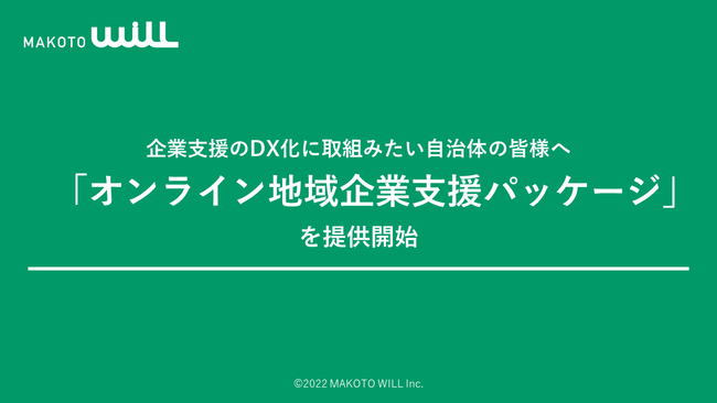 地方自治体と連携した創業支援、人材誘致・育成事業などを展開する株式会社MAKOTO WILL(本社:宮城県仙台市、代表取締役 菅野永)と、地方に特化した中小企業支援業務を展開する株式会社MAKOTO Prime(本社:宮城県仙台市、代表取締役 竹井智宏)は、自治体向け「オンライン地域企業支援パッケージ」を立ち上げたことを発表致します。