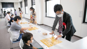 プロ棋士4名がそれぞれ参加者3名を相手に、実際の対局を通じて指導を行いました。飛車角落ちでプロ棋士に勝利する小学生や平手でプロを悩ます参加者もいるなど、熱のこもった指導対局となりました。