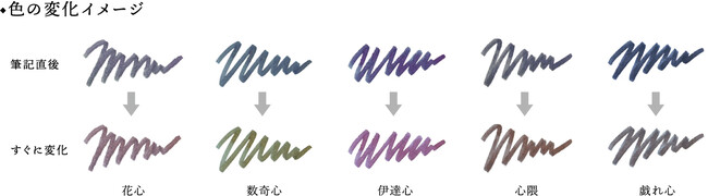 ゆらめくインクのシリーズ第2 弾は、すぐに色が変化する、濃い色、はっきりした色を多く採用しています。