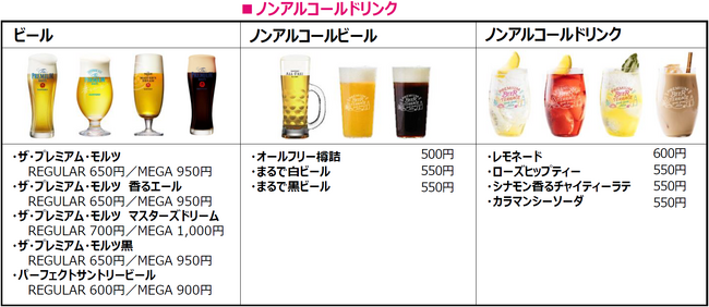 ドリンクには、毎年大人気のサントリー「神泡のザ・プレミアム・モルツ」をはじめとしたビール類に加え、アジアンフレイバーのカクテルをご用意しました。