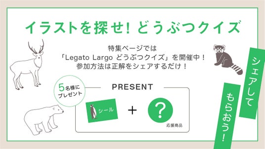 この特設サイトでは、商品だけでなく動物の生態や暮らしをもっと知ってもらうきっかけに「Legato Largo どうぶつクイズキャンペーン」を開催!