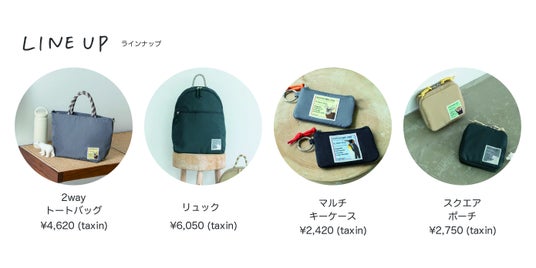 商品はトートバッグ、リュック、マルチケース、ポーチの4型展開。