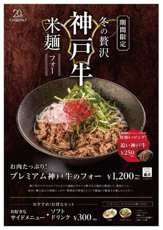 国産米麺専門店COMPHO開業以来初の、神戸牛のフォーは期間限定メニュー