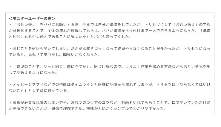 【育児・家事共有サポートアプリ「我が家のトリセツ」概要】