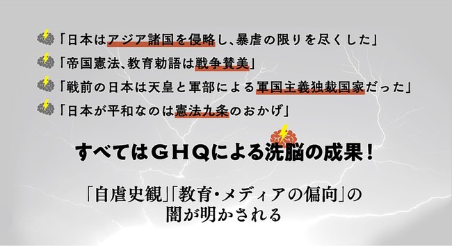 「日本はアジア諸国を侵略し、暴虐の限りを尽くした」「帝国憲法、教育勅語は戦争賛美」「戦前の日本は天皇と軍部による軍国主義独裁国家だった」「日本が平和なのは憲法九条のおかげ」……これらすべてはGHQによる洗脳の成果である。