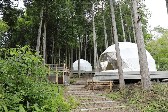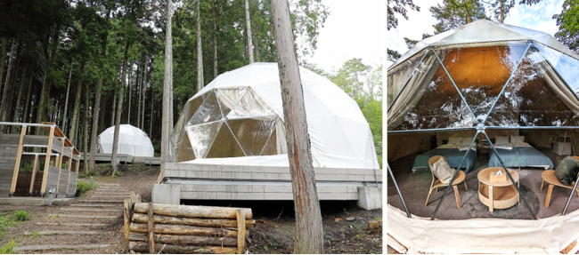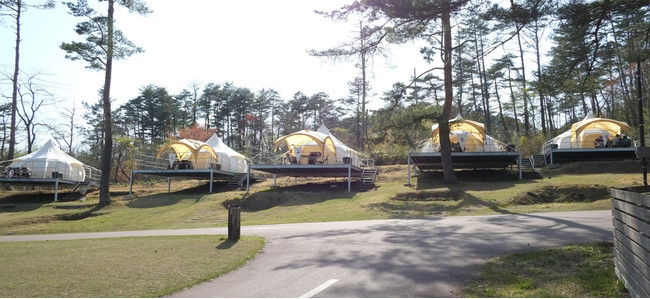 今回リニューアルした注目ゾーン。ドームテントでワンランク上のおしゃれで快適な居住性抜群の豊かな時間が過ごせます。
