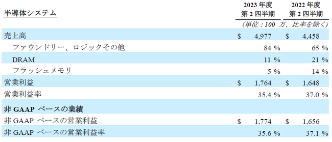非GAAPベースでは、売上総利益率46.8%、営業利益19億3,000万ドル(売上高の29.1%)、1株当たり利益2.00ドルでした。