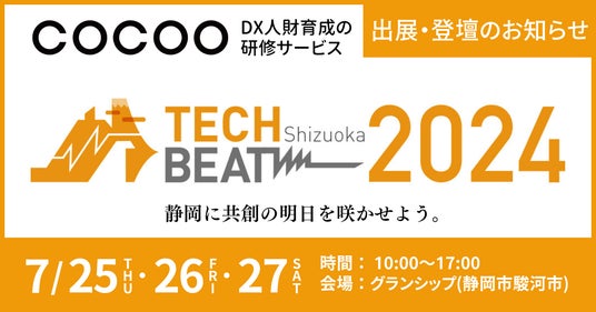 「人財」×「デジタル」事業で社会のDX化を支援するコクー株式会社(本社:東京都千代田区、代表取締役CEO:入江 雄介)は、静岡県内の企業とスタートアップ企業とのビジネスマッチングを通したイノベーションの創出を目的に2024年7月25日(木)~7月27日(土)に開催されるイベント「TECH BEAT Shizuoka 2024」に出展・登壇いたします。