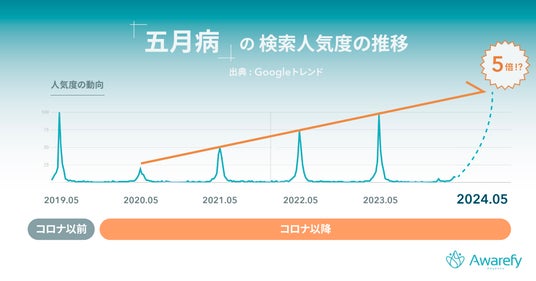 「五月病」のここ数年の検索トレンドから、今年は特に五月病に注意が必要な可能性が高いことがわかりました。