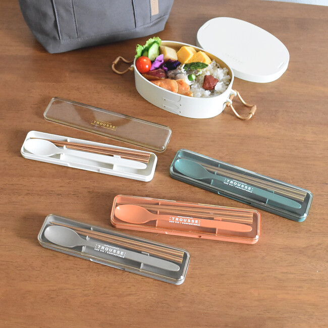 サイズ : (ケース)幅20.9奥4.7高2cm (箸・スプーン)全長19.5cm