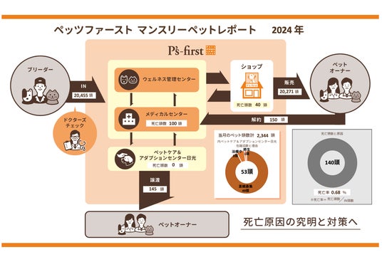 “Pets always come first”を理念に掲げるペッツファーストホールディングス株式会社(本社:東京都目⿊区、代表:正宗 伸麻)は、傘下のペットショップ「Pʼs-first」の 2024年における流通過程の重要指標をご報告いたします。