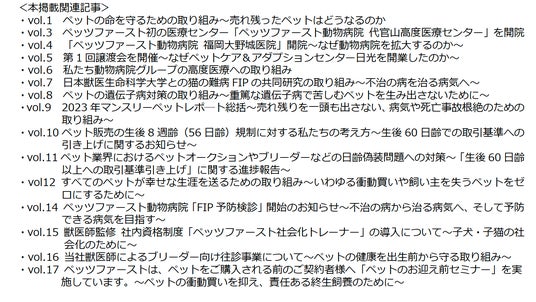 2025年からは当社では開示範囲や対象をさらに拡大しますが、さらに国や行政、ペット業界、愛護団体、ペットオーナーがさらに連携を深め、ペットの文化や流通販売の健全化を適切に議論し、悪質な違法業者を排除する仕組みづくりにも貢献したいと考えています。