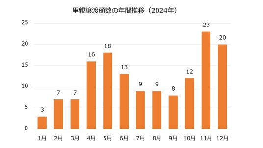 里親譲渡頭数の年間推移(2024年)