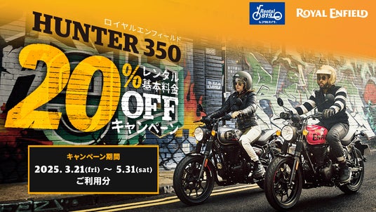レンタルバイクの「レンタル819」を日本全国で展開する株式会社キズキレンタルサービスは、ロイヤルエンフィールドの人気モデル「HUNTER350」を全国のレンタル819店舗で、なんと!20%OFFで利用できるキャンペーンを実施いたします。