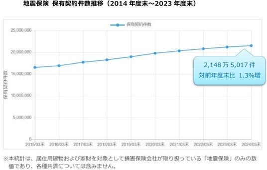 損害保険料率算出機構【略称:損保料率機構、理事長:早川眞一郎】は、2023年度末(2024年3月末)現在における地震保険の保有契約件数および2023年度の新契約件数を都道府県別にまとめ、当機構ウェブサイト「グラフで見る!地震保険統計速報」(https://www.giroj.or.jp/databank/earthquake.html)に掲出しました。