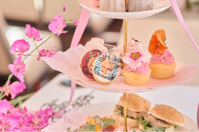 今回のコラボは、そんな満を辞して日本上陸した『ファッション・フリーク・ショー』の世界観を五感で味わっていただくことのできる特別なバスツアーです。バスの内装は、ブーゲンビリアのショッキングピンクやツタをふんだんにデコレーションすることで、アバンギャルドなジャングルを表現。フードでは、本アフタヌーンティーを象徴するオリジナルクッキー、衣装を彷彿させる華やかなカップケーキも開発しました。